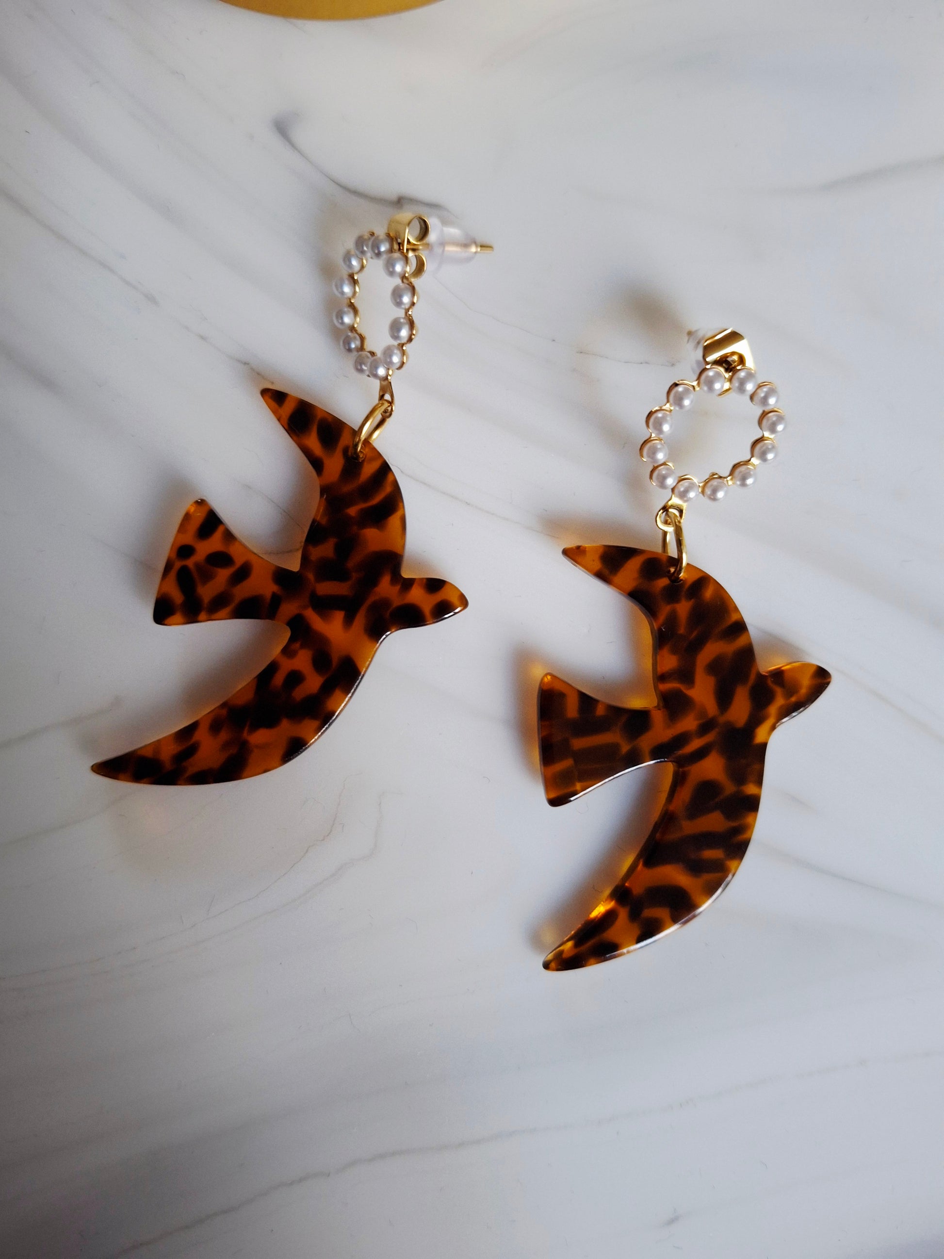 Boucles d'oreille Oiseau léopard - Acétate terrazzo marron