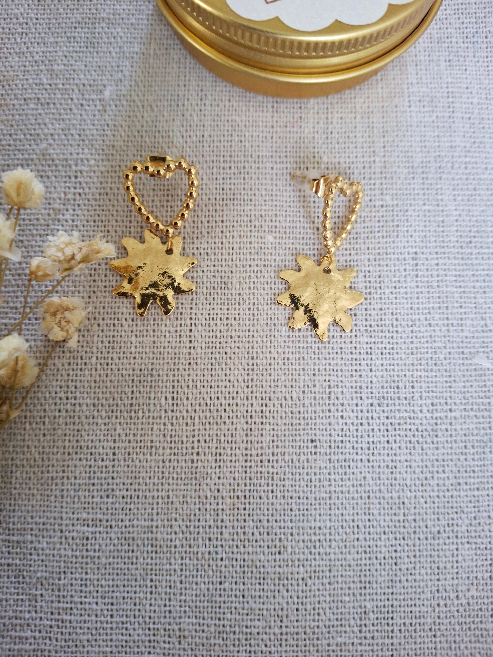 Boucles d'oreilles en acier inoxydable - soleil martelé