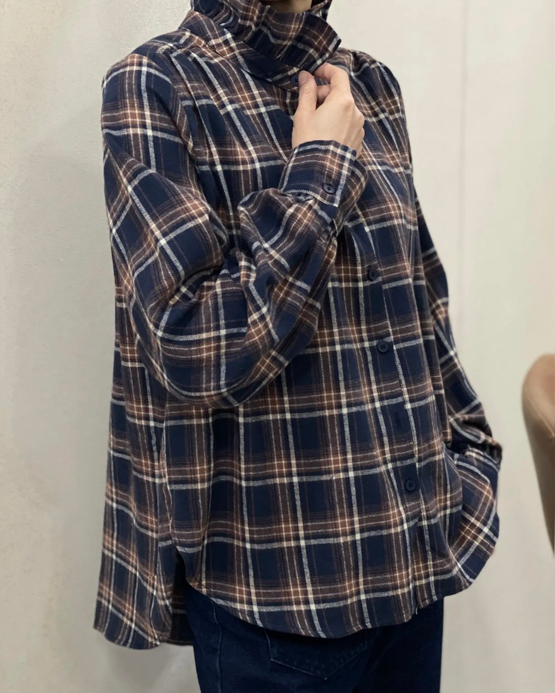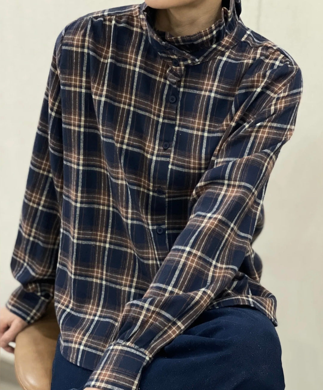 Chemise Philippine en 100 % coton, au motif carreaux café et bleu. Une pièce à l’allure décontractée et raffinée, parfaite pour un style intemporel et naturel.