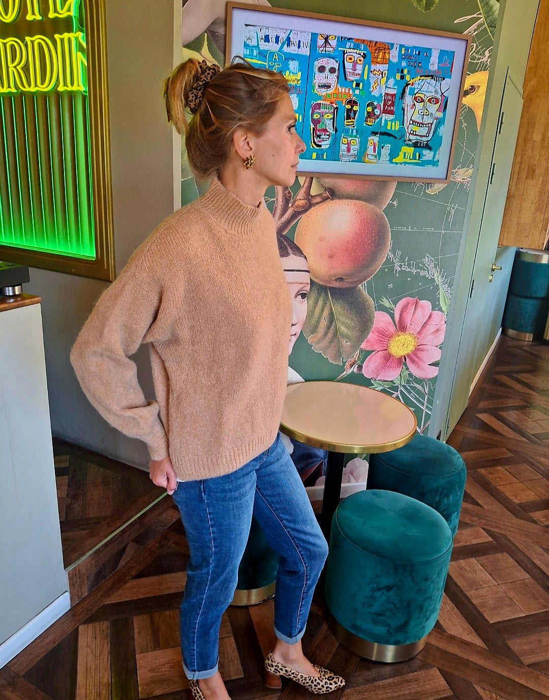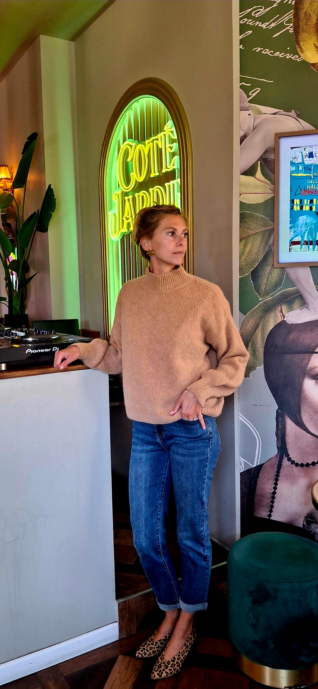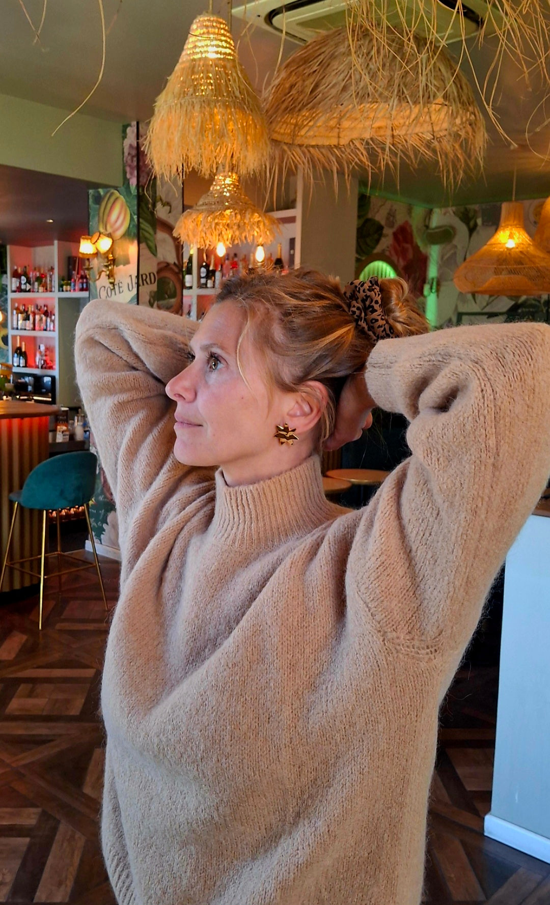 ✨ Pull Alban en maille – Col montant & manches longues – Camel ✨