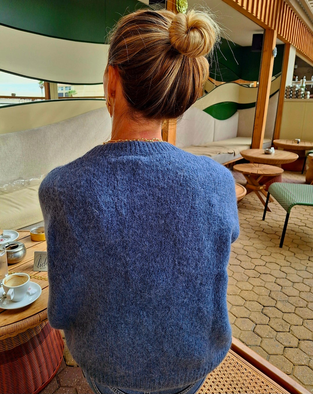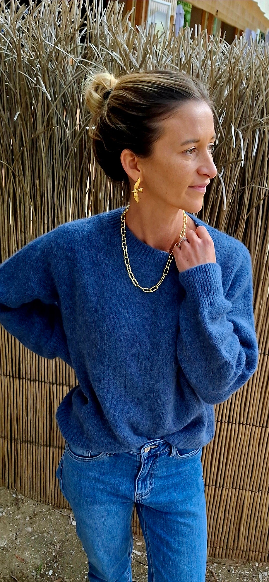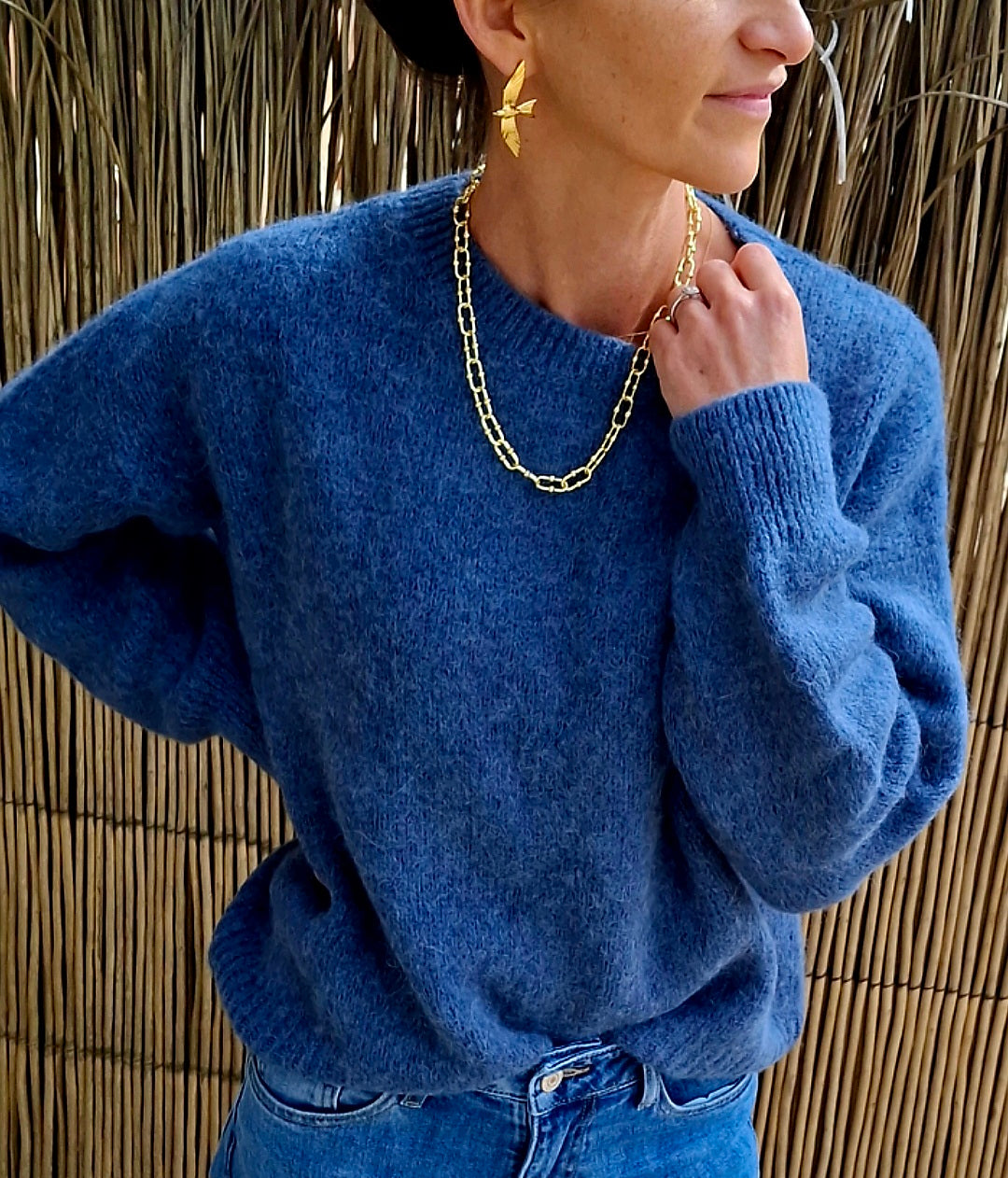 ✨ Pull Orso en maille d’alpaga – Col rond & manches longues – Denim ✨